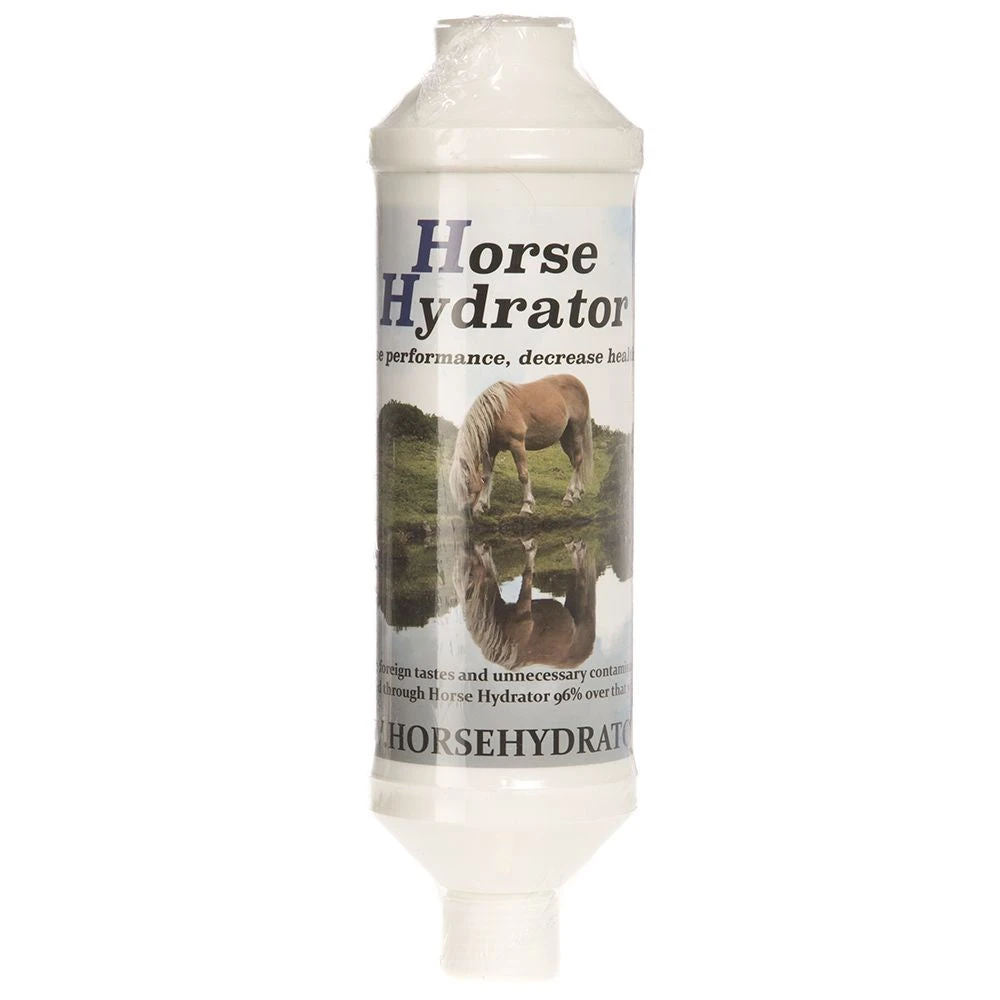 The Horse Hydrator is an easily attachable filter that rids foreign water of unfamiliar tastes and smells, bringing water to its purest state. Not only does the filter rid the water of foul tastes allowing horses to drink more but, chlorine, soluble heavy metals, iron and hydrogen sulfide are significantly reduced in the filtration process. This product will help to reduce injury that can be caused from dehydration and consuming the harmful elements listed above.