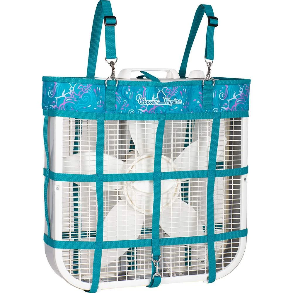 The Classic Equine Fan Bag is your new travel companion! Secures a standards 20″x20″ box fan to the stall. Sturdy nylon webbing resists horseplay. Lightweight and portable. Space saving design.