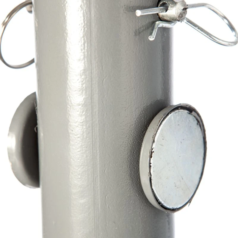 The Maintenance Farrier Stand allows you to easily perfrom Farrier duties with less weight on your back. It supports the hoof for daily maintenance such as treatment, bandaging and polishing. The steel drop pin allows the stand to be adjusted to four heights, ranging from 17-25 1/2″. A powerful magnet is located on each side of the post for holding shoeing nails, shoes or other tools at the ready. One rubber cradle and one rubber post come with the unit. Wide base and heavy steel design will keep the Farrier Stand upright and functioning for many years of use. Heavy Duty diamond plate finish.