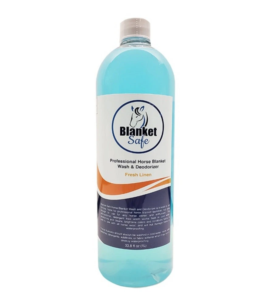 Blanket Safe Wash and Deodorizer is a non-bacterial, cold water wash that is detergent-free. It is low-sudsing, residue free, and has built in deodorizers. All made from EPA approved raw materials. These soaps are safe for animals and children once dry. The non-bacterial properties help protect cross-contamination and lower the risk of transmission from horse to horse or even barn to barn. This wash not only gently cleans your blanket of dirt, but the bacteria and grime that cause gross odors!