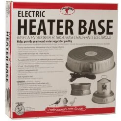 Electric Heater Base helps prevent water from freezing in temperatures as low as 10 degrees F. Designed for use with Little Giant Double Wall Founts (Item Nos. 9832, 9833, 9835, and 9838, sold separately) and other all-metal containers. Perfect for unheated coops and barns; can be used outdoors in a dry, sheltered area. Made of heavy-duty, rust-resistant galvanized steel. Cord should be protected from animals and used with a Ground Fault Circuit Interrupter (GFCI) protected outlet. Unit will not draw electricity until temperature drops below freezing. Uses less than 1 amp per hour. 16.5 inch diameter by 3.687 inch high.