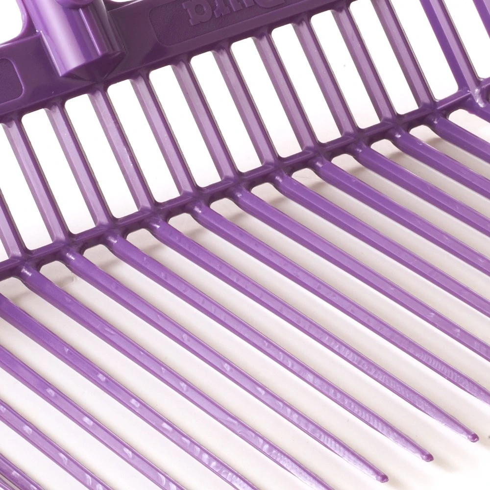 This is the original Little Giant DuraFork bedding fork that is a fixture in stables and barns everywhere. Manufactured from extra-strong 100 percent polycarbonate to provide super strength and flexibility. Designed for long-lasting use around the farm, ranch, and home. Specially designed tines are uniquely angled to provide easy manure pickup with less spilling. Nylon locknut secures the 52 inch long by 1.125 inch diameter hardwood handle. Fork head is 13.125 inch long by 15.125 inch wide. Purple fork head.