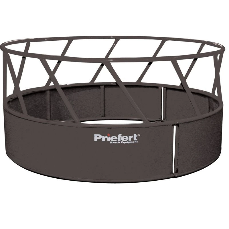Priefert’s Heavy Duty Round Bale feeders are a great option for producers that need a durable feeder. Designed to be free of head and foot traps, these feeders are ideal for feeding round bales of hay to your cows, calves, and bulls. The slanted top rail design helps ensure that cattle keep their head in the feeder while eating, eliminating costly hay loss. Available with or without a skirted bottom, these feeders are easy to relocate as your feeing needs change. Each feeder consists of three curved pieces that assemble quickly and easily with the included bolts and nuts. Our skirted feeder is sheeted 20″ up from the ground, to further reduce hay loss and reduce the chance of lower leg injury. The Architectural Grade Powder Coat Finish with UV inhibitors add years of life to your investment by helping the feeder resist rust, scratches and fading.