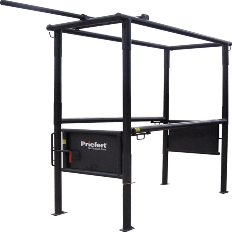 Horse Stocks have been an essential at vet clinics and breeding farms for years. Today, more and more horse owners at all levels are finding the value of the safe, controlled environment that horse stocks create for common handling issues at the family farm. With adjustable front and rear doors and emergency side exits, Priefert’s Horse Stock easily fits most horses and mules for safe restraint. This versatile and affordable stock includes a Tie Bar and is ideal for vet work, for use as a wash rack, or anytime you want your horse to stand in one place. The Architectural Grade Powder Coat Finish helps the product to resist rust, scratches, and fading to add years of life to your investment.