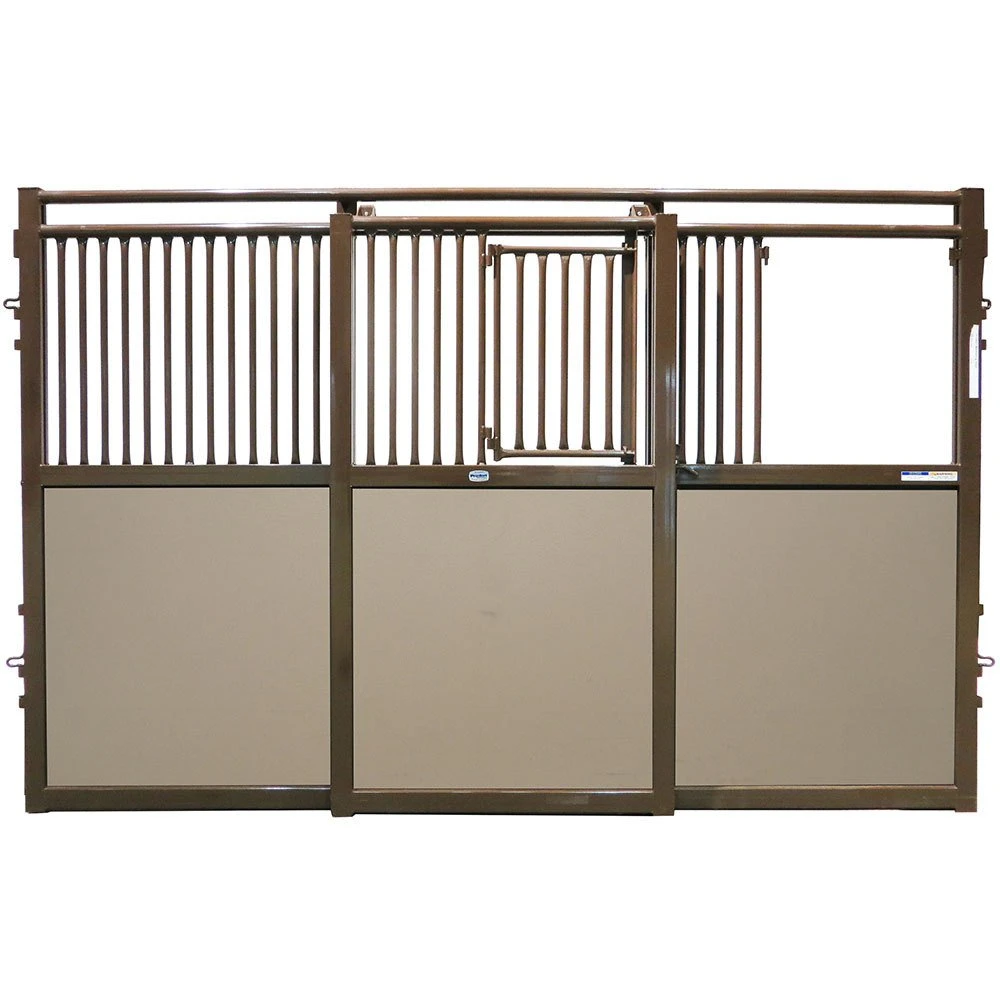 Priefert’s Premier Stalls have been a mainstay in the equine industry for decades. Premier Stalls are safe, attractive, and affordable. This Premier Stall Front comes installed with Priefert’s high density poly. Priefert’s Poly is durable, attractive, easy to clean, and is specially formulated to be high impact resistant. These stalls are designed with the highest degree of consideration for the safety of both the horse and handler. Our Premier Stalls offer horse owners practical solutions for creating a safe, functional environment for their valued animals. This stall front features a center-open door design. The door slides open on apple core rollers. Each stall door includes an access window. The stall front panel also features an opening that allows owners to select a window or feeder option (each sold separately). The door closes using a gravity latch, which can accept a lock if an owner desires. The bottom portion of the stall is constructed from galvanized steel to provide maximum resistance to rust and corrosion. The stall features an attractive black powder coat finish to help the stall resist rust, scratches, and fading, adding years of life to your investment. No tools are required for assembly. Our stall fronts and panels join using simple pin connectors. A starter post is required for stall setup when you are not connecting to a wall or other existing structure (starter post sold separately). Priefert Premier Stall Fronts are available in 10’ and 12’ lengths.