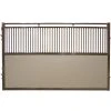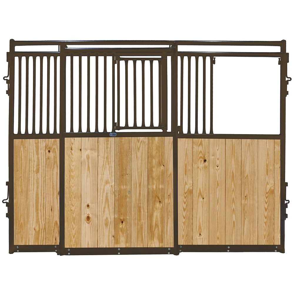 Priefert’s Premier Stalls have been a mainstay in the equine industry for decades. Premier Stalls are safe, attractive, and affordable. This Premier Stall Front combines a vertical bar top with a wood-filled bottom (Wood Kit sold separately). These stalls are designed with the highest degree of consideration for the safety of both the horse and handler. Our Premier Stalls offer horse owners practical solutions for creating a safe, functional environment for their valued animals. This stall front features a center-open door design. The door slides open on apple core rollers. Each stall door includes an access window. The stall front panel also features an opening that allows owners to select a window or feeder option (each sold separately). The door closes using a gravity latch, which can accept a lock if an owner desires. The bottom portion of the stall is constructed from galvanized steel to provide maximum resistance to rust and corrosion. The stall features an attractive brown powder coat finish to help the stall resist rust, scratches, and fading, adding years of life to your investment. No tools are required for assembly. Our stall fronts and panels join using simple pin connectors. A starter post is required for stall setup when you are not connecting to a wall or other existing structure (starter post sold separately). Priefert Premier Stall Fronts are available in 10’ and 12’ lengths.