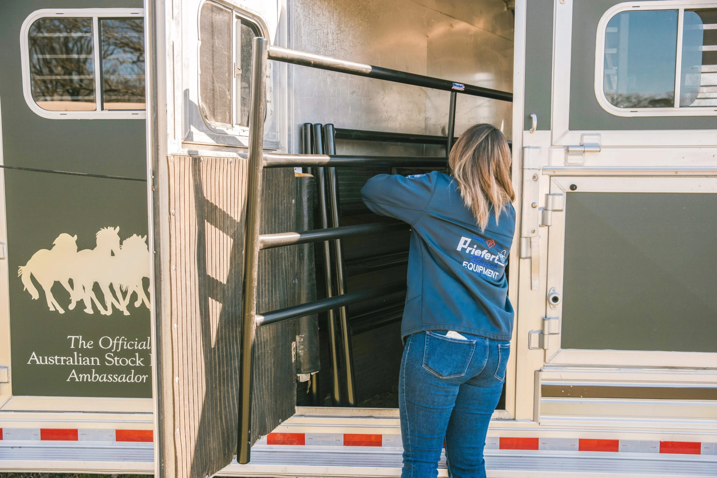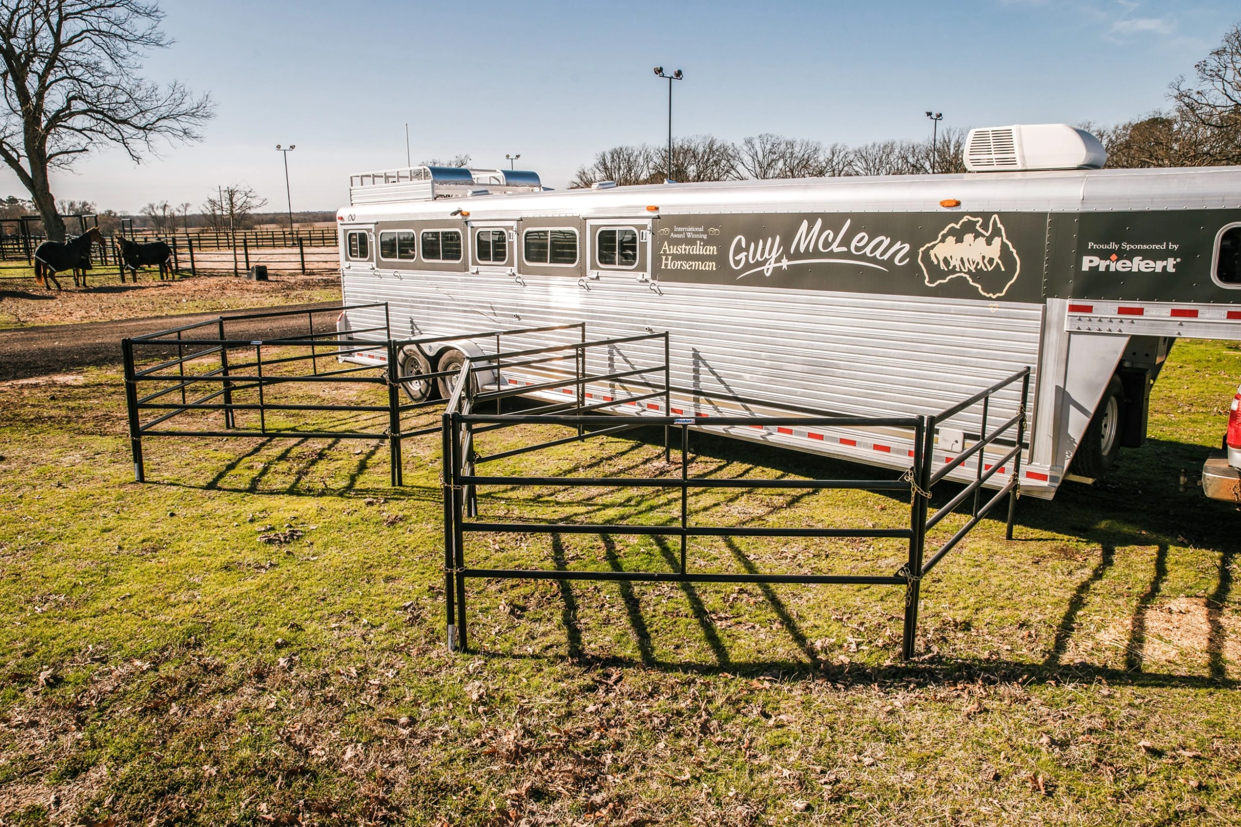 Priefertβs Trailer Panel is ideal for temporary housing of horses while on the road at events. This four-rail panel stands 50.5 inches tall and is great for use with horses that are cooperative and accept confinement. At just under 8β long, these panels are designed to fit into the slant of a horse trailer or in an 8β hay rack for easy transport. These panels feature a single piece vertical stay fitted through drilled rails to provide additional strength and structural integrity. The straight legs are balled on each end, sealing the tubing completely from the elements. This lightweight panel is easy to move around, and chain connectors allow for quick, tight connections between panels and gates that help eliminate dangerous foot traps. Chain connectors also offer increased versatility for connecting to panels over uneven ground and allow for easy connection to existing structures. The Architectural Grade Powder Coat Finish helps the product to resist rust, scratches, and fading to add years of life to your investment.
