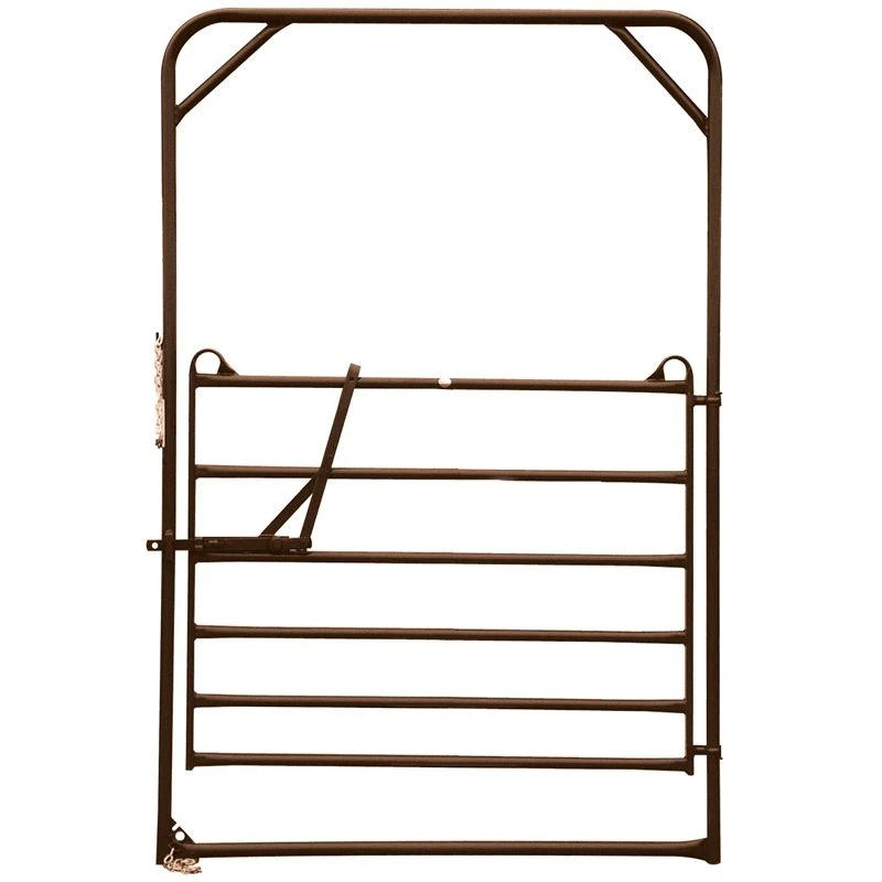 Our number one selling “Horse-Safe” Panel line, Utility Panels and Gates are ideal for use in a number of applications around the farm or ranch, from round pens to arenas to paddocks, these panels and gates are a solid choice anywhere confinement is needed and heavy pressure is not expected. Our 4’ wide Utility Bow Gate features a 7’ tall frame, making it ideal for “walk thru” access, while the 6’ wide bow gate features a 9’ tall frame for “ride thru” access. Chain connectors ensure tight connections and offer increased versatility to allow for connections over uneven ground and easy connections to existing structures. The Architectural Grade Powder Coat Finish helps the product to resist rust, scratches, and fading to add years of life to your investment.