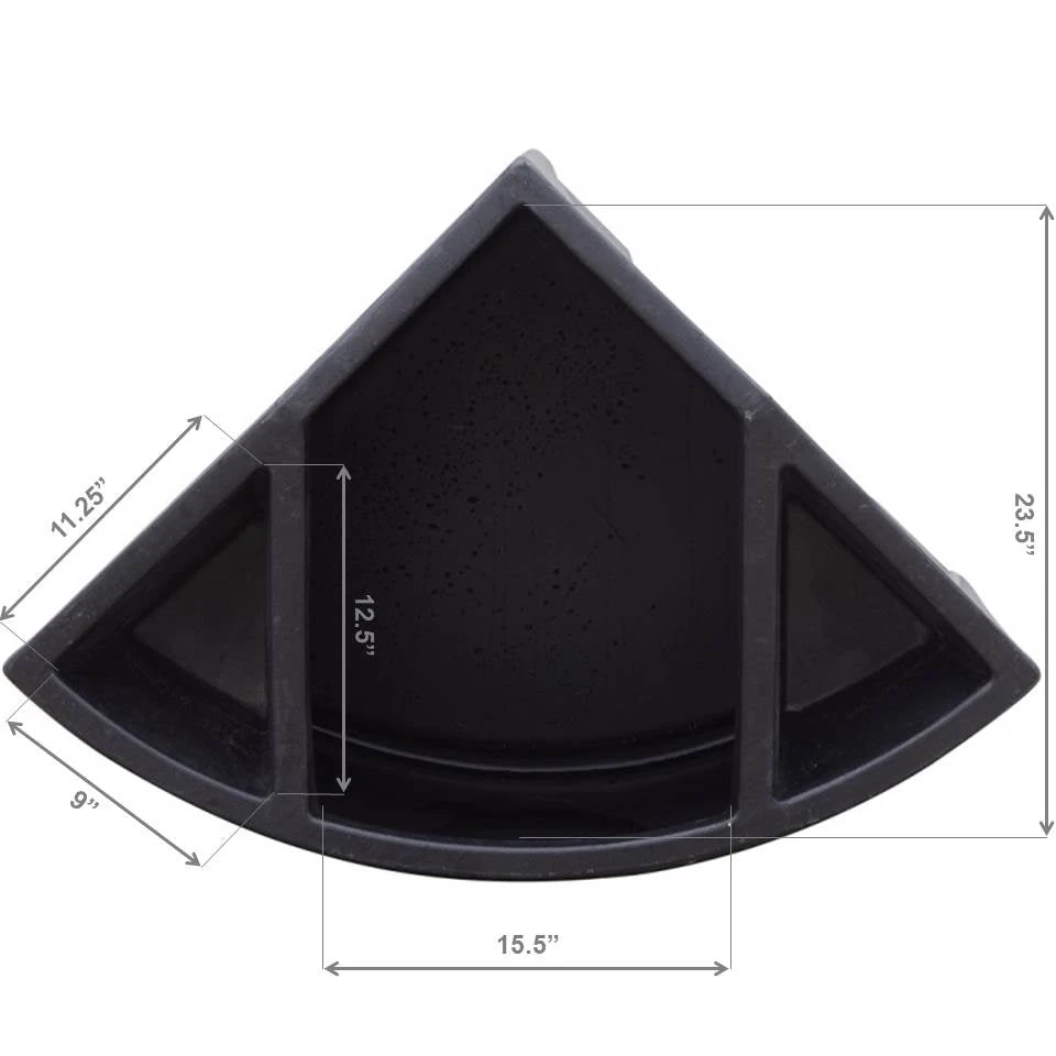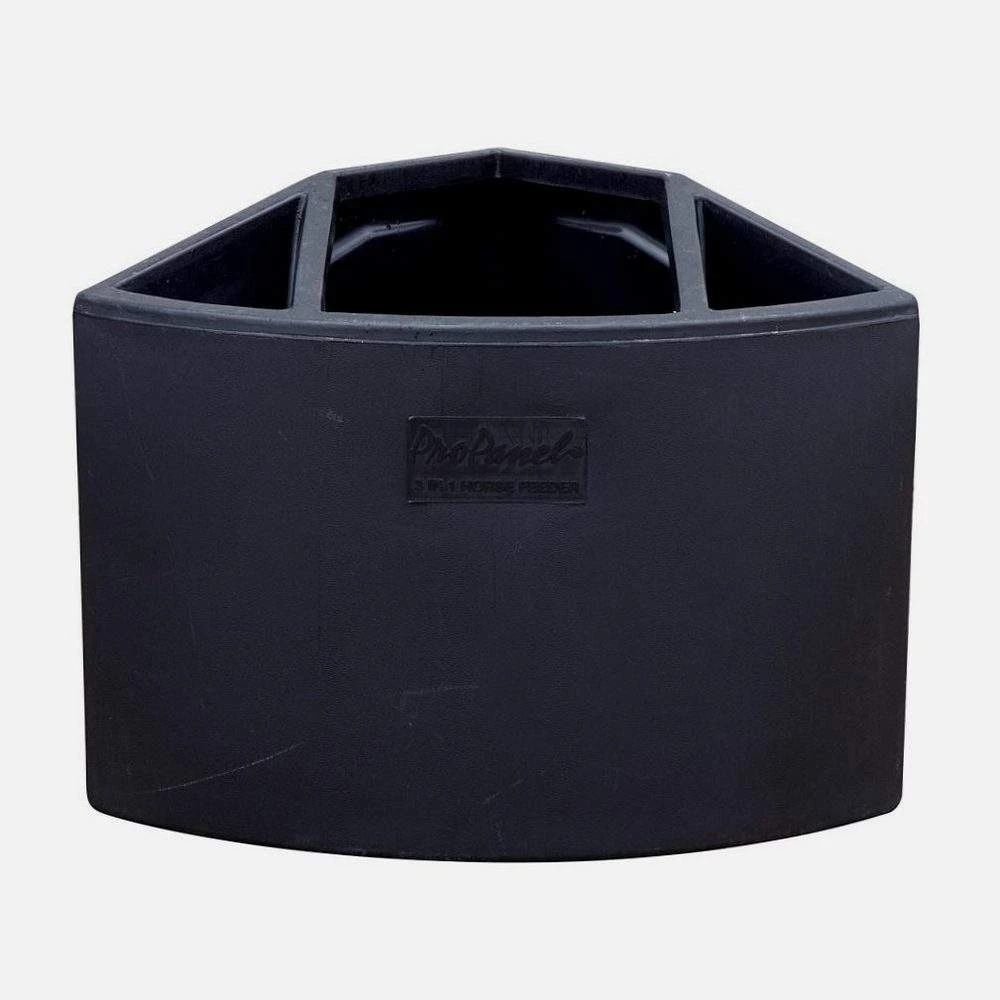 The corner feeder features an ultra-durable one piece molded design that has a large center cavity for hay and two smaller side cavities for grain and salt.