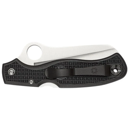 Spyderco’s Rescue knives are long favored by seafarers and the design has since been embraced by rescue workers, EMT’s and ranchers-anyone cutting around flesh in an emergency. Now available in a rustproof version, the Atlantic Salt is a modified Rescue made with state of the art non-rusting H1 steel. H1 is a precipitation-hardened steel containing nitrogen instead of carbon, which cannot rust. The serrated hollow-ground blade offers remarkable cutting performance in and around fresh and saltwater. Textured with a Volcano Grip pattern, the molded fiberglass reinforced nylon (FRN) handle is black, equipped with a reversible titanium pocket clip for right or left- handed use. We recommend threading a thong or lanyard cord through the lanyard hole for back-up retention around water, where once dropped, a knife is often irretrievable or lost. Model:Â C89SBK