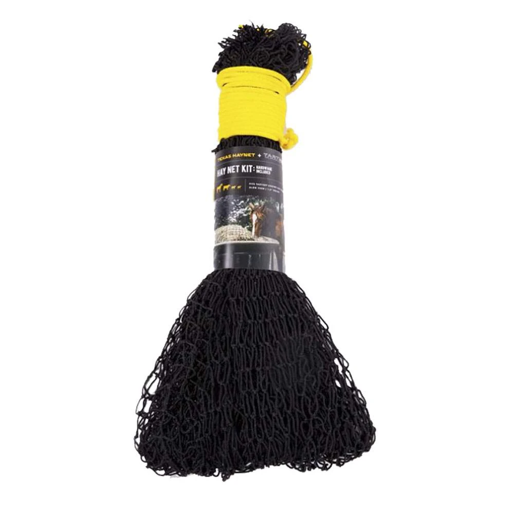 Basket sold separately. You can create the safest, healthiest, most cost effective square bale feeder on the market by pairing our slow feed hay net kit with a Tarter Equine Hay Basket (pictured and sold separately). The Texas Haynet slows consumption and helps prevent colic, ulcers, and founder. The Equine Hay Basket keeps hay dry and off the ground while allowing horses to eat in their natural position with their head down. Together, both products improve digestion and eliminate waste. Our heavy duty hardware keeps the net safely and securely fastened inside the basket.